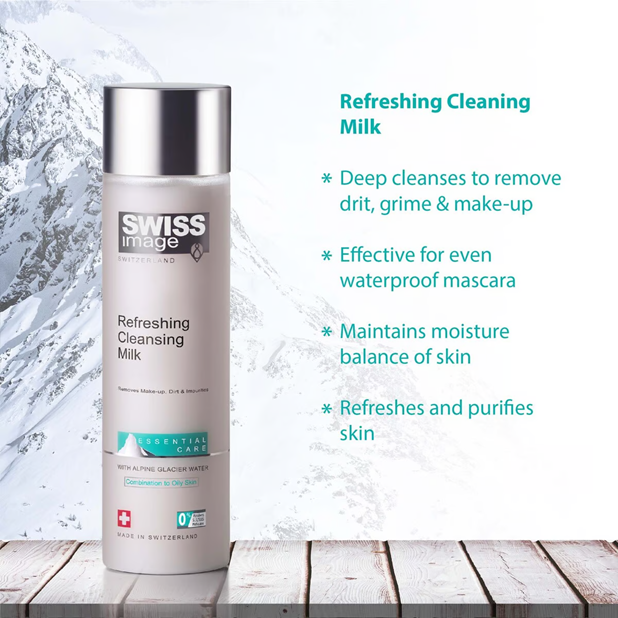 Swiss Image Refreshing Cleansing Milk – 200ml a milky, conditioning face cleanser that gently removes makeup and dirt.