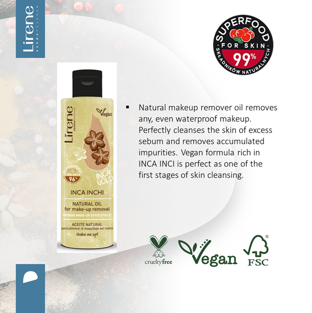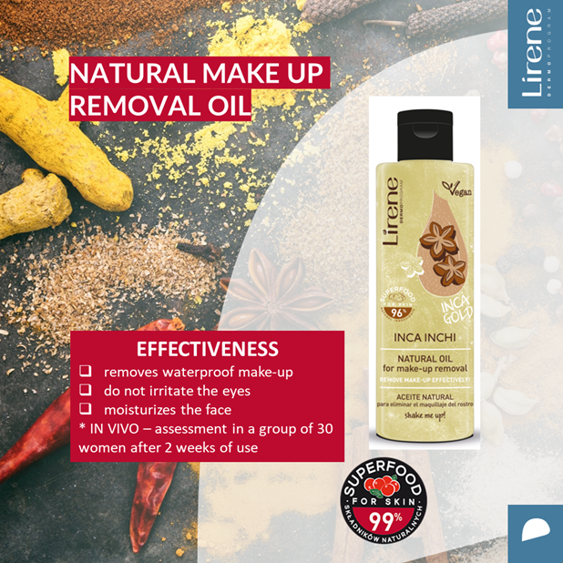 Lirene Make-up Removal Oil Incha Inchi 100ml removes any makeup, even waterproof.
