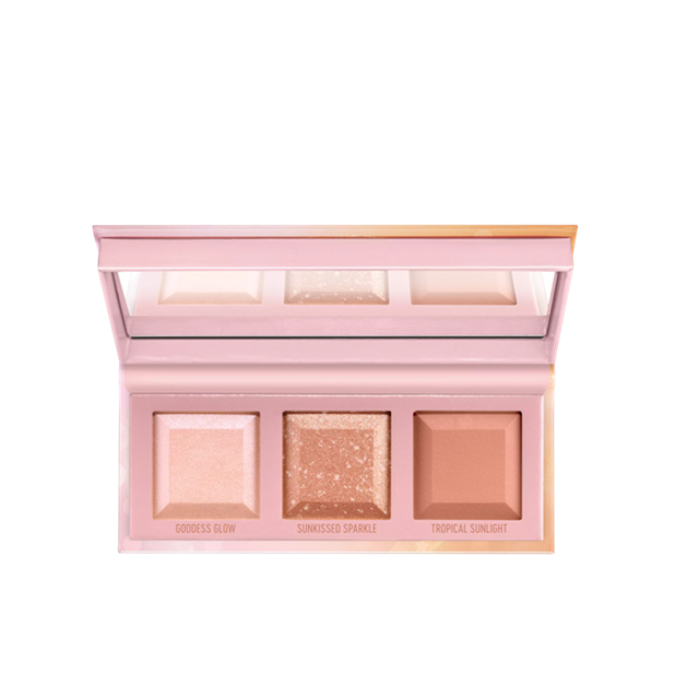 Highlighter- and bronzer palette. With 3 highly pigmented shades.