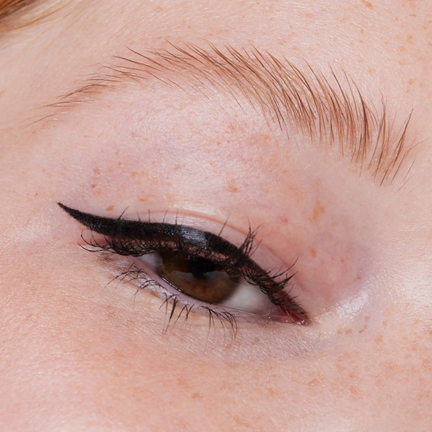 • Position brush tip close to the lash roots and in a gentle, fluid movement apply eyeliner along the curve of your lash line for natural look.