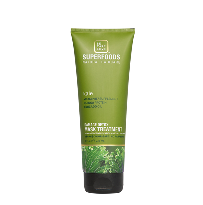 The Kale Damage Detox Mask Treatment strengthens & helps fill in pitted strands while amino acids mend split ends. Gently condition and purify weak, damaged hair by naturally harnessing Organic Superfoods.