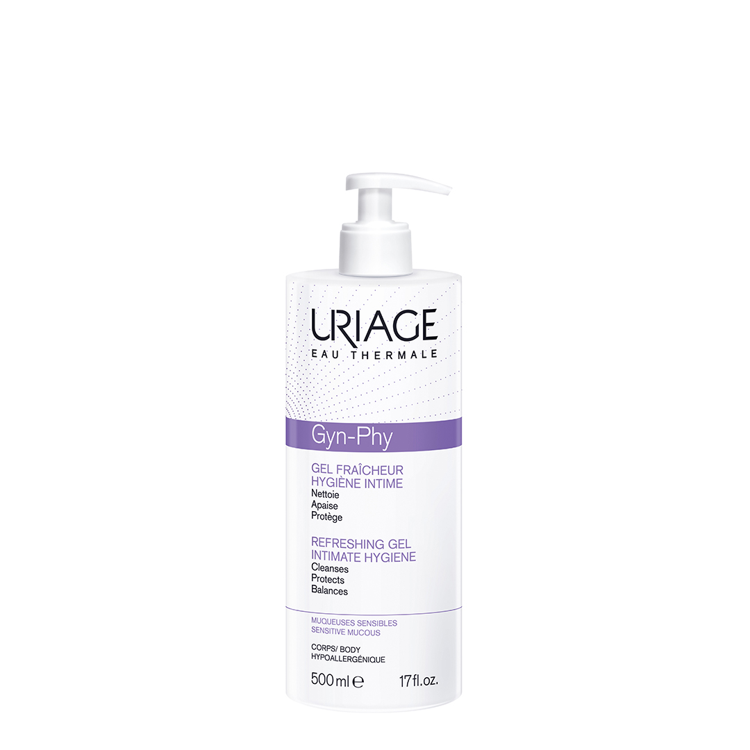 The presence of Uriage Thermal Water soothes the skin, relieving any sensations of discomfort. Physiological pH of the Uriage Gyn-Phy Intimate Hygiene Refreshing Gel helps to preserve comfort and wellness all day long.