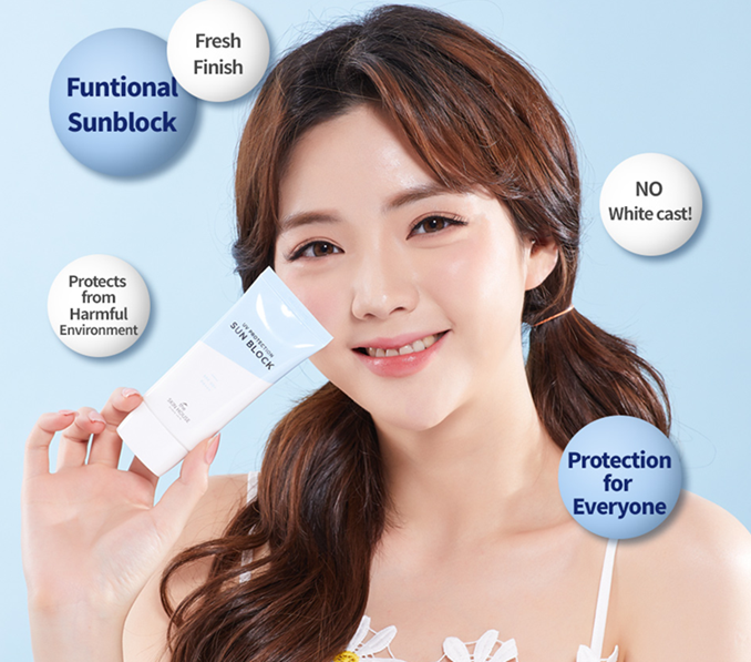 UV Protection Sun Block has a refreshing completion without greasiness, and is a powerful waterproof sun block. It is mild for the skin, but strong for intercepting ultraviolet rays.