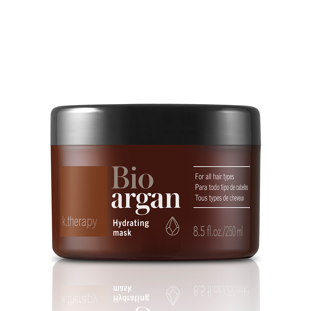 Moisturizing hair mask with 100% organic argan oil. Protects hair against external agents. Repairs damaged hair and split-ends. Suppleness, shine and intense nourishment.