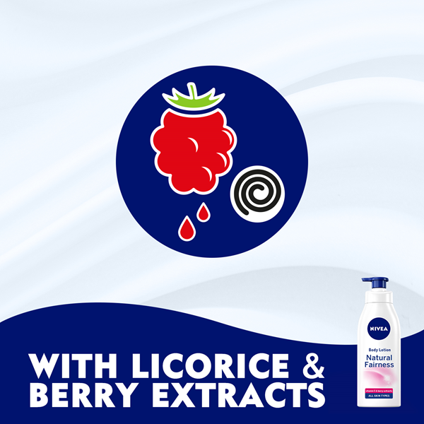 Nivea Body Lotion Natural Fairness 400ml a gentle lightening formula that contains glycerin and vitamin E which provide intense moisturization. Leaving your skin smooth and well protected all day long.