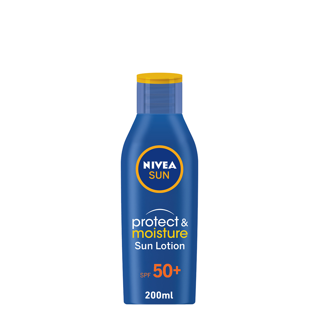 Nivea Sun Lotion Protect & Moisture SPF50+ 200ml long-lasting moisturization for skin that feels soft and hydrated.