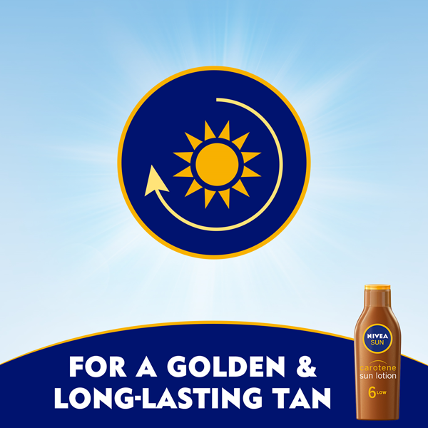 Nivea Sun Tanning Lotion Carotene SPF6 200ml helps the skin reach an intense and beautiful tan quickly. While protecting and firming against sunburn.