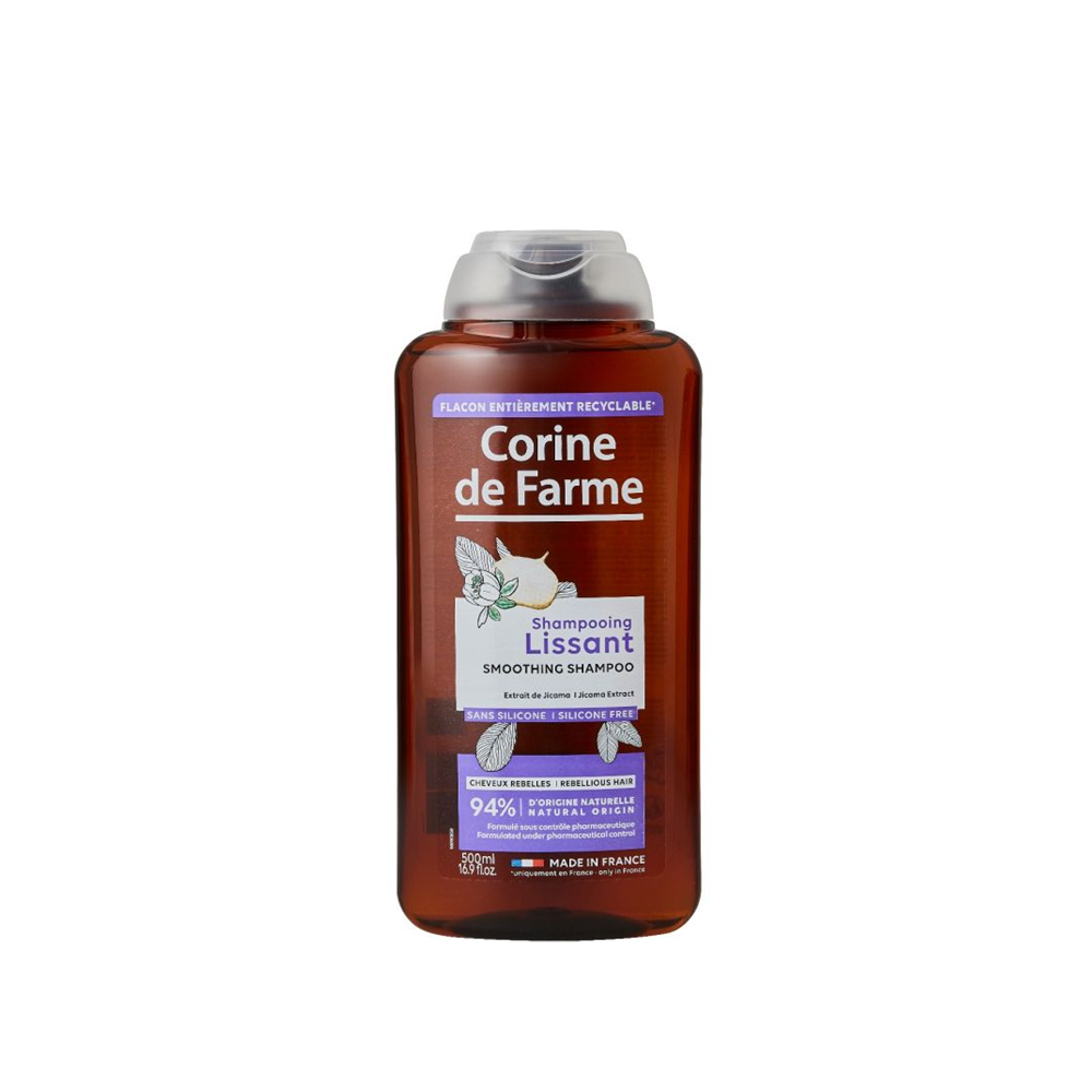 Enriched with Jicama extract, hair regains softness, suppleness and shine. Corine De Farme Smoothing Shampoo with Jicama Extract 500ml controls unruly, rebellious and difficult-to-straighten hair. It cleans, smoothes and relaxes hair while making it easier to style and limiting frizz due to humidity.
