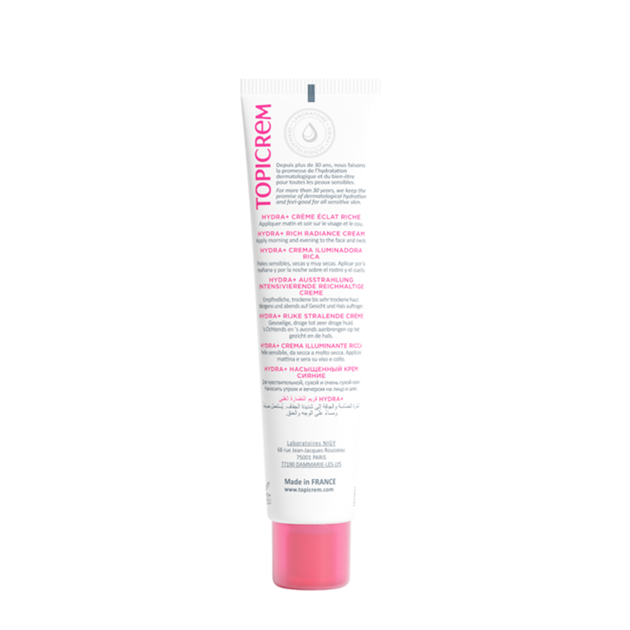 A rich and moisturizing face cream for sensitive and dry skin types. With an ultra creamy and nourishing texture, it uses glycerin and a cocktail of active ingredients to protect the skin against de-hydration, and keep it moisturized for up to 24 hours. Suitable for tight and reactive skin, as well as very dry complexions. Topicrem Rich Ultra-Moisturizing Radiance Cream 40ml helps to smooth, soften and soothe the skin