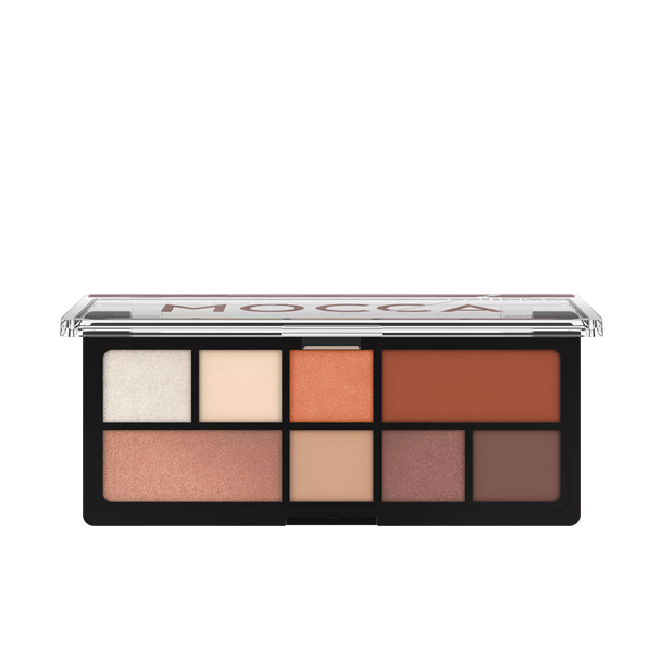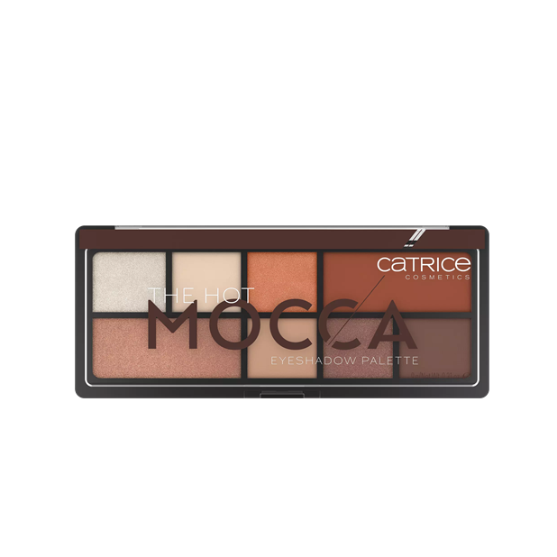 The velvety-soft texture is easy to apply and blend and convinces with a high colour payoff. Catrice The Hot Mocca Eyeshadow Palette contains 8 highly-pigmented eyeshadows with a velvety-soft texture that have different finishes. Due to their velvety texture, the shadows apply easily and offer a high color payoff.