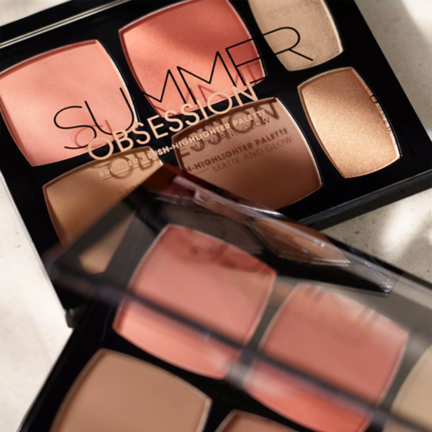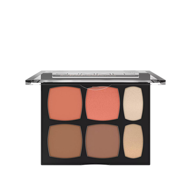 Palette with bronzer, blush and highlighter for a natural summer complexion. Emphasize the contours of the face & set highlights. For a sun-kissed complexion.