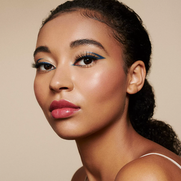 The best way to apply bronzer, blush and highlighter is with a brush: Simply apply a little of the bronzer shades on the side of the nose, some blush on the cheekbones and a touch of highlighter on the arch of the brows and the highest point of the cheekbones – and gently blend.