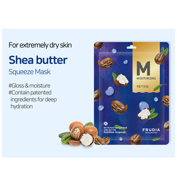 Frudia My Orchard Squeeze Shea Butter Sheet Mask is a butter layer that deeply nourishes and covers the skin.